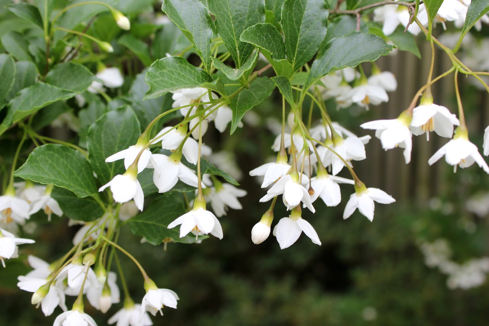 I also like the fruit on my Japanese snowbell tree (Styrax japonica). Not quite as showy, but still pretty. I love the creamy green color.